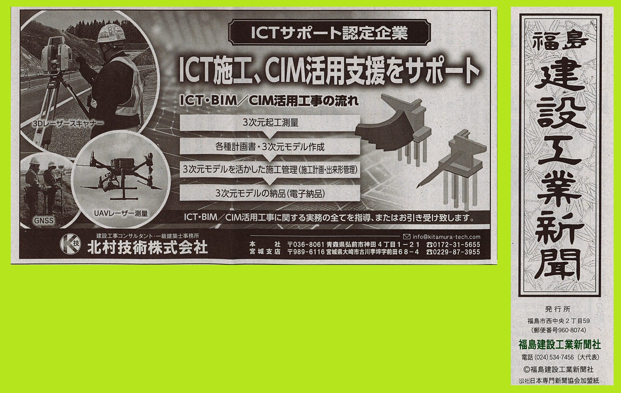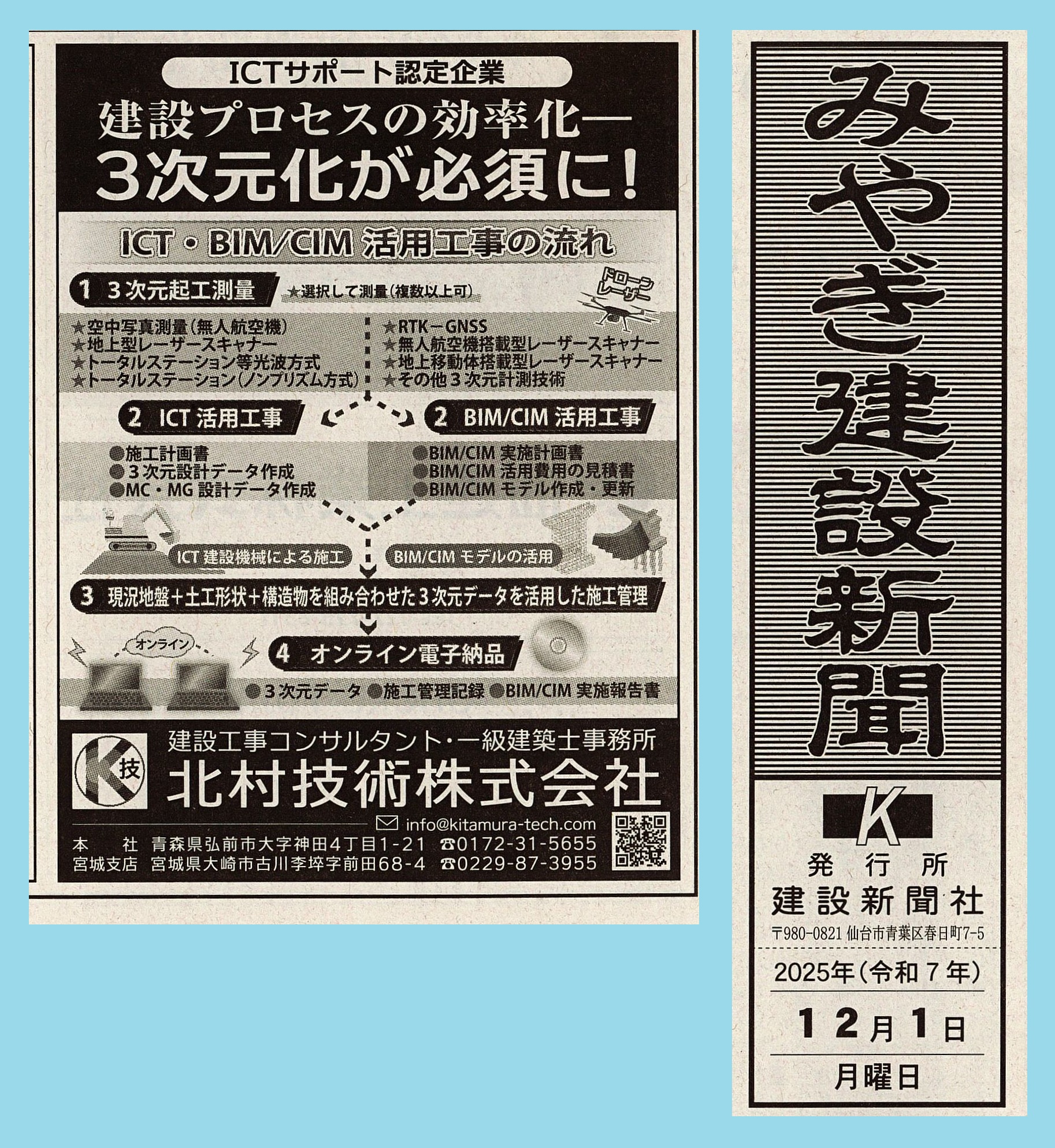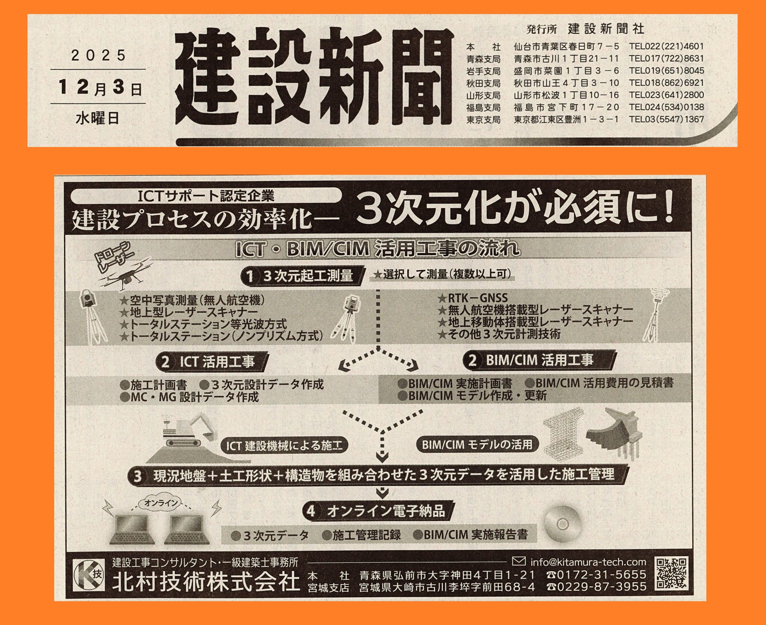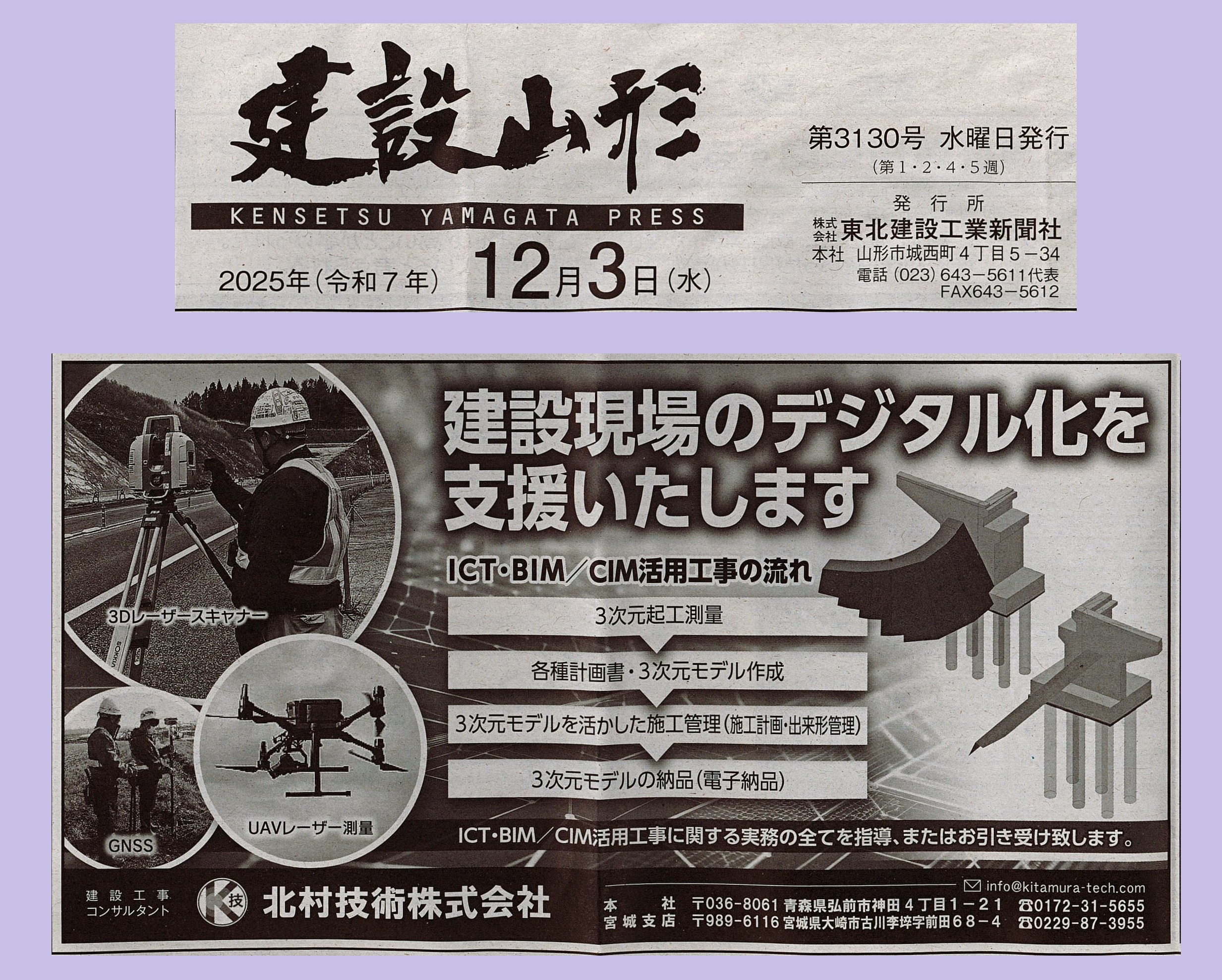 建設新報様建設新聞様福島建設工業新聞様日刊岩手建設工業新聞様日刊秋田建設工業新聞様みやぎ建設新聞様建設山形様、掲載ありがとうございます🎵