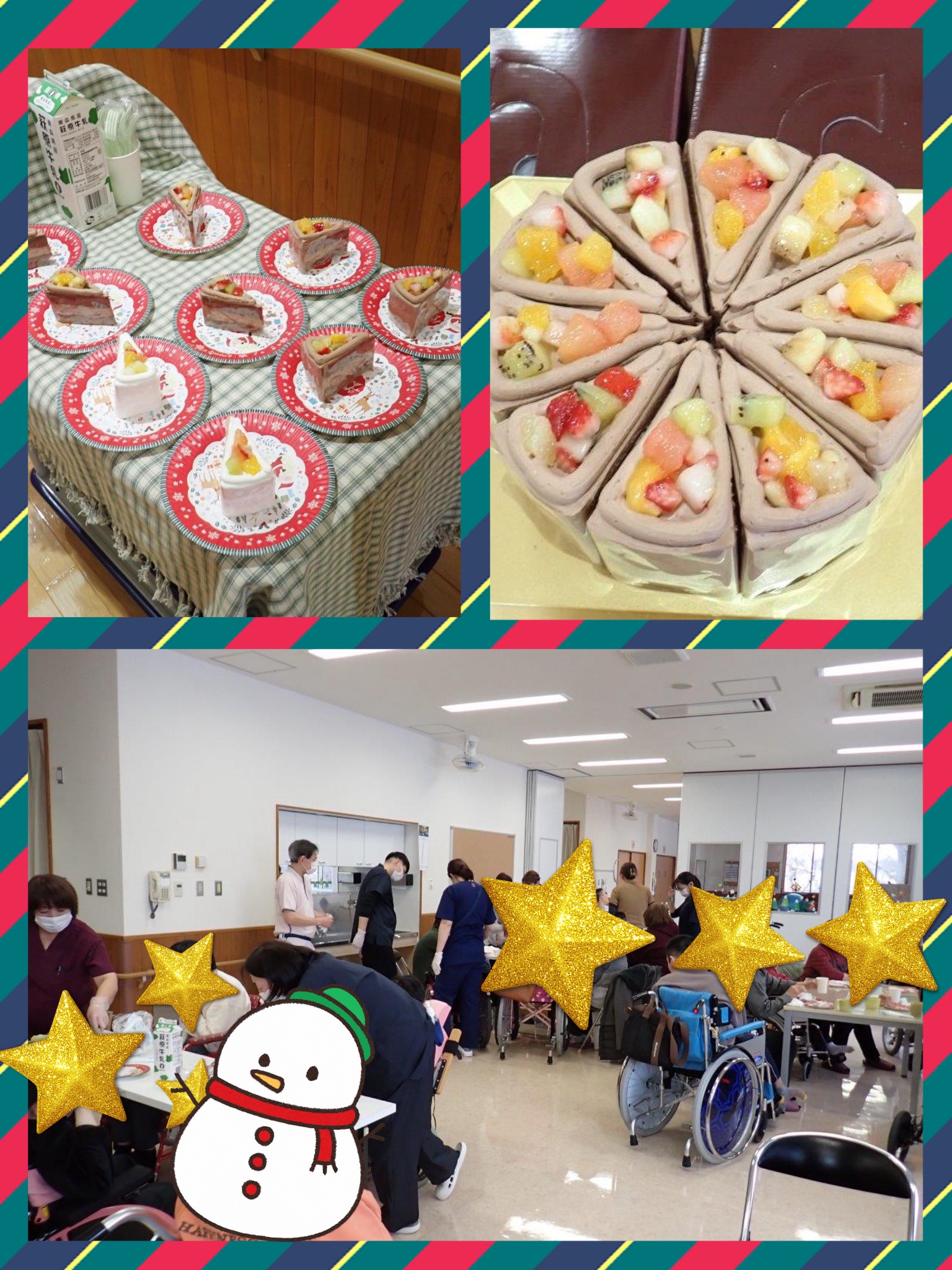 今年のケーキ🍰は、昨年に引き続き、"グランメルシー"さんに作っていただきました。入所者さんが食べやすいように、特別に中身と飾りのフルーツを細かく切っていただいています🍓🥝🍌🍑グランメルシーさん、いつもありがとうございます🙇♀️