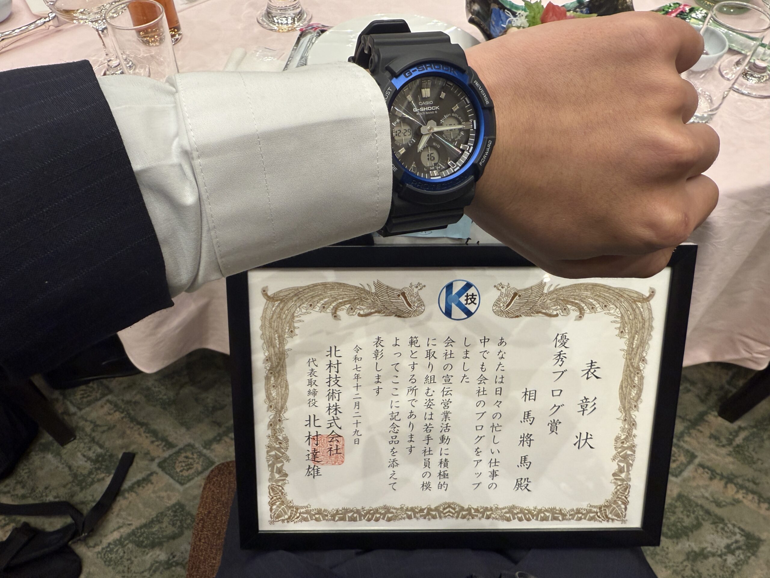 まずは年明け前の話ですが忘年会でブログ賞を頂き、時計・表彰を貰いました