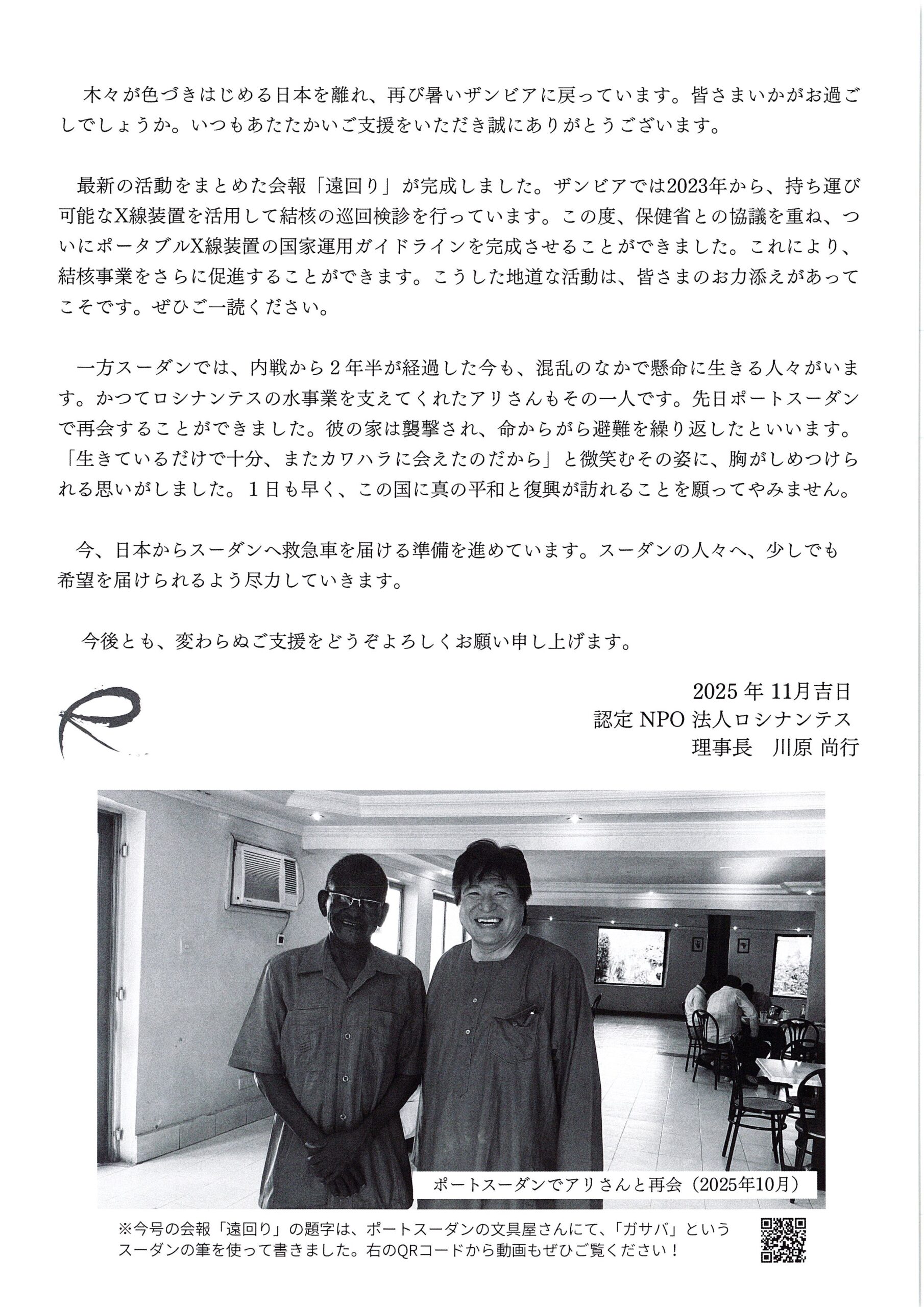 お手紙、冊子をいただきましたのでご覧ください