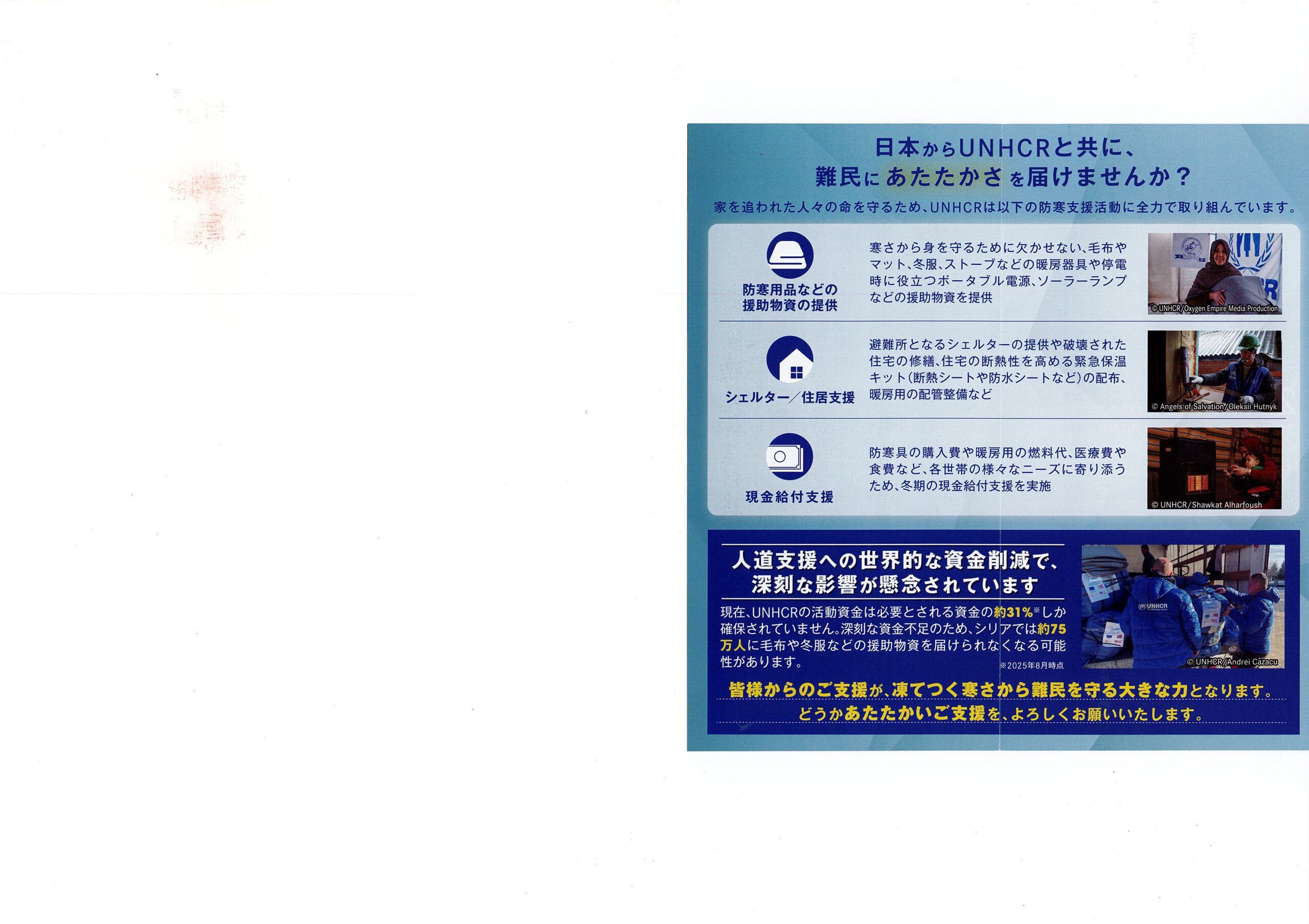 北村技術ではUNHCR様に定期的な寄付を行っております