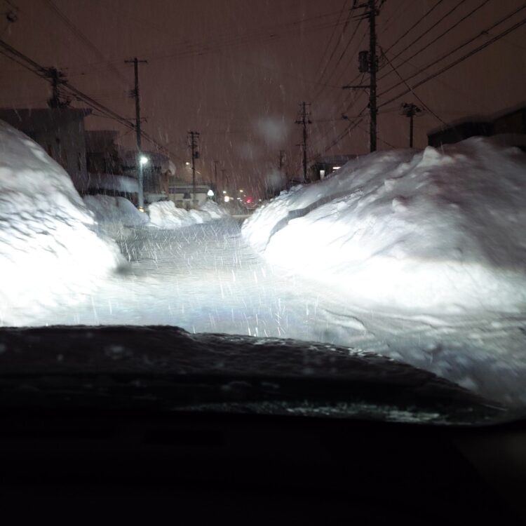 もともとは歩道付12M道路二車線道路の7Mのはずが車一台分のみ除雪