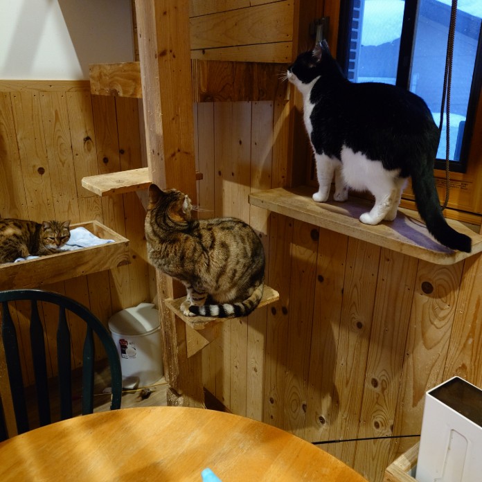 >(=^・・^=)たちに癒されて、会社でストレスたまって、またネコたちに癒されてます、家族ですもはや猫なしでは暮らせませんね(=^・^=) 我が家は真冬でも外に出られる『寒い!』でも喜んでます、池の水を飲んで外で遊んで寒くなれば家に入ってコタツの中に、、、この水も地下からの天然水が沸いて来てます20坪のハウスも自然に任せて5℃~10℃ちゃんと新しい毛が生えてフワフワです、夏は暑くて毛が抜けます、自然のままに、ゲージに入れず、エサはチュールも混ぜてブレンドエサ、牛乳入りエサの二種類