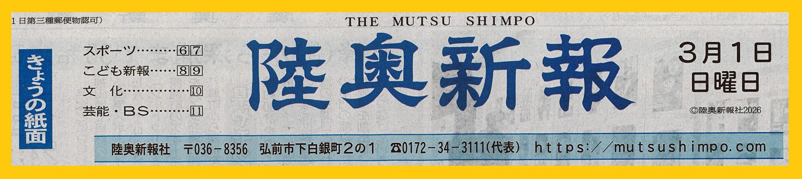 少し早いですが、毎年恒例の陸奥新報さんの新一年生を祝う特集へも広告を掲載していただきました😊