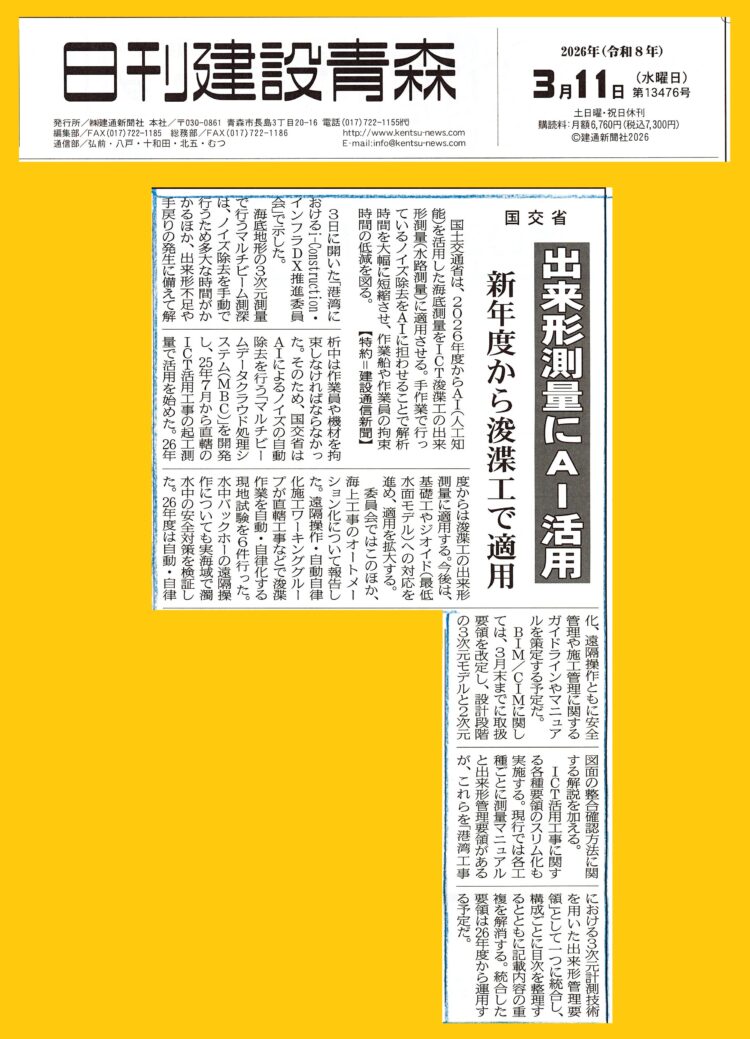 3月11日付 日刊建設青森様へ掲載された記事のご紹介です。