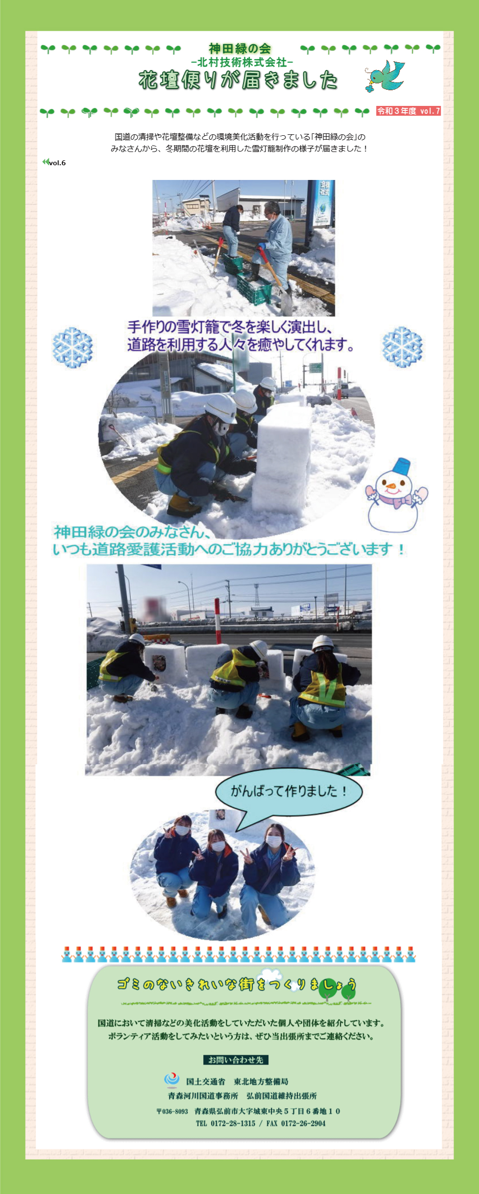 皆さんこんにちは(^-^) 企画広報の鹿内です👩 神田緑の会の活動報告です🍀🐞 本社前の「国道7号線弘前神田バイパス」の雪もだいぶ解けてきたということで! ゴミ拾いを行いました🥫 チョッキ・ヘルメットを着用して、安全に作業をしています!(^^)! ... 続きを読む