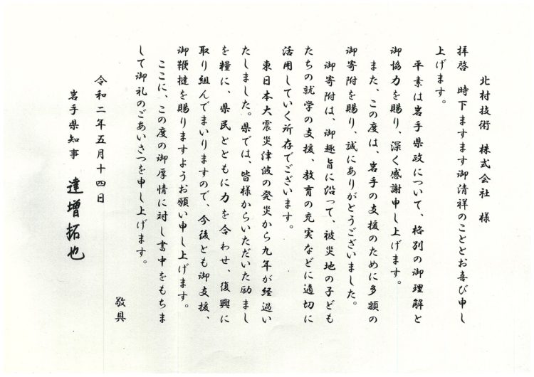 こんにちは☀ ムシムシとした日が増えてきましたね???? 北村技術では、東日本大震災の被災地、岩手県へ 震災後、寄付を継続して行っています! 被災した子供たち、親を亡くした子供たち そんな子供たちの未来が明るいものになったらと… ... 続きを読む