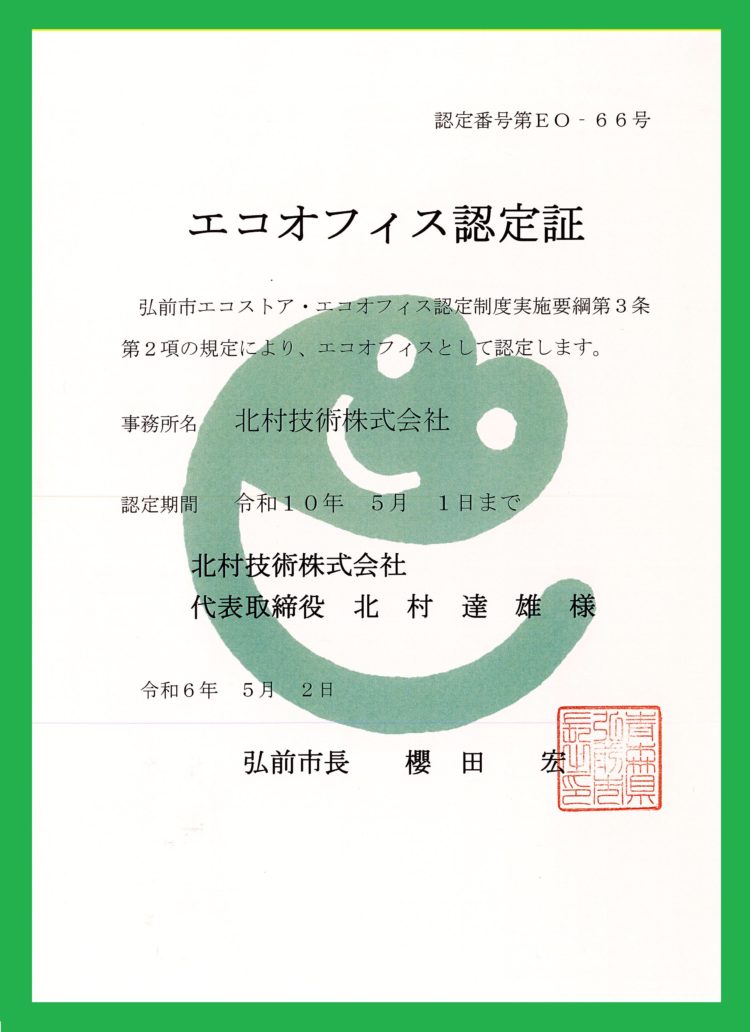 こんにちは北村技術ですヾ(^∇^) 青森県内も梅雨入りし、ジメジメした日が続いています☔ 体調管理に十分に注意しながら決算月を乗りきりましょう❕ さて、このたび弊社は、 "弘前エコオフィス認定企業"に更新認定されました😊 認定証はこちら👇👇👇 ... 続きを読む
