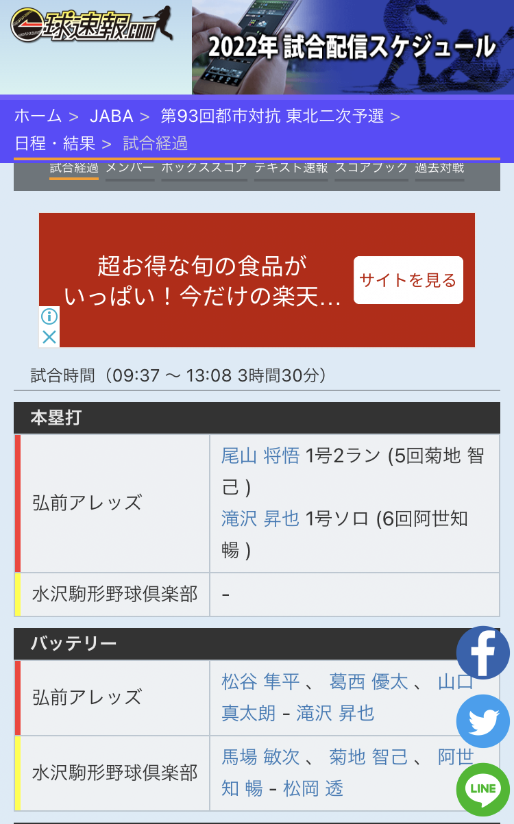 月初めに行われた、都市対抗二次予選。 たくさんの応援ありがとうございました!! 人生初の公式戦でのHR。最高でした!! 試合結果は、、、 初戦の水沢駒形さんとの試合は3-4の逆転負け。 敗者復活1回戦のきらやか銀行さんとの試合は0-10の8回コールド負け。 ... 続きを読む