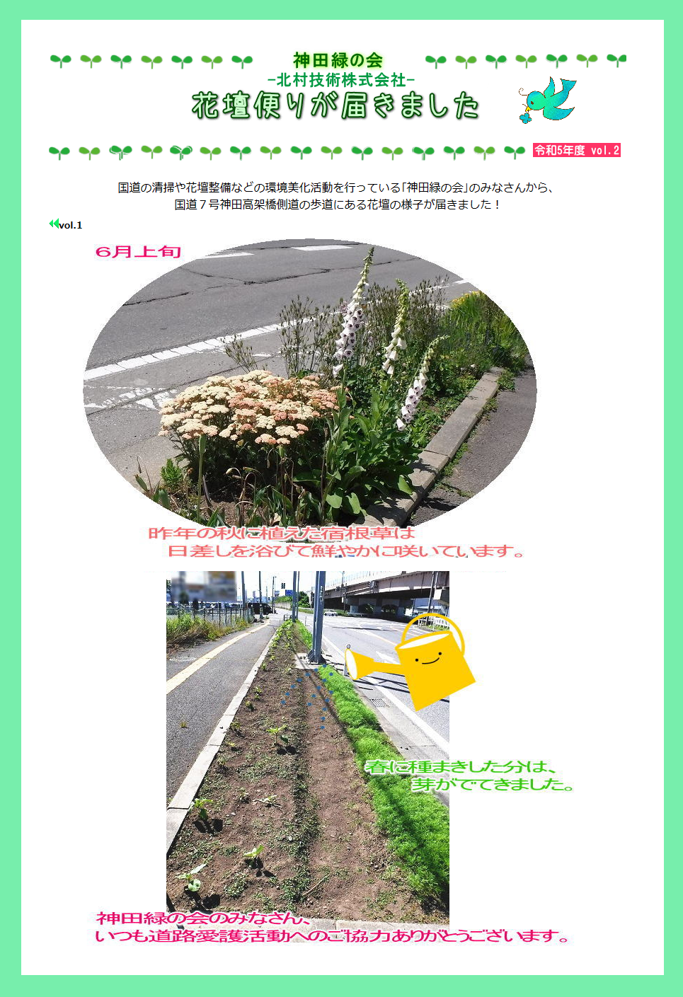 みなさんこんにちは(^^)/ 東北もついに梅雨入りしました☔ 不安定な天気が続き…外で作業されている方は特に急な雨に気を付けてください(>_<) 国交省さんのHPに神田緑の会の活動が掲載されました🌼 ありがとうございます(^^♪ ... 続きを読む
