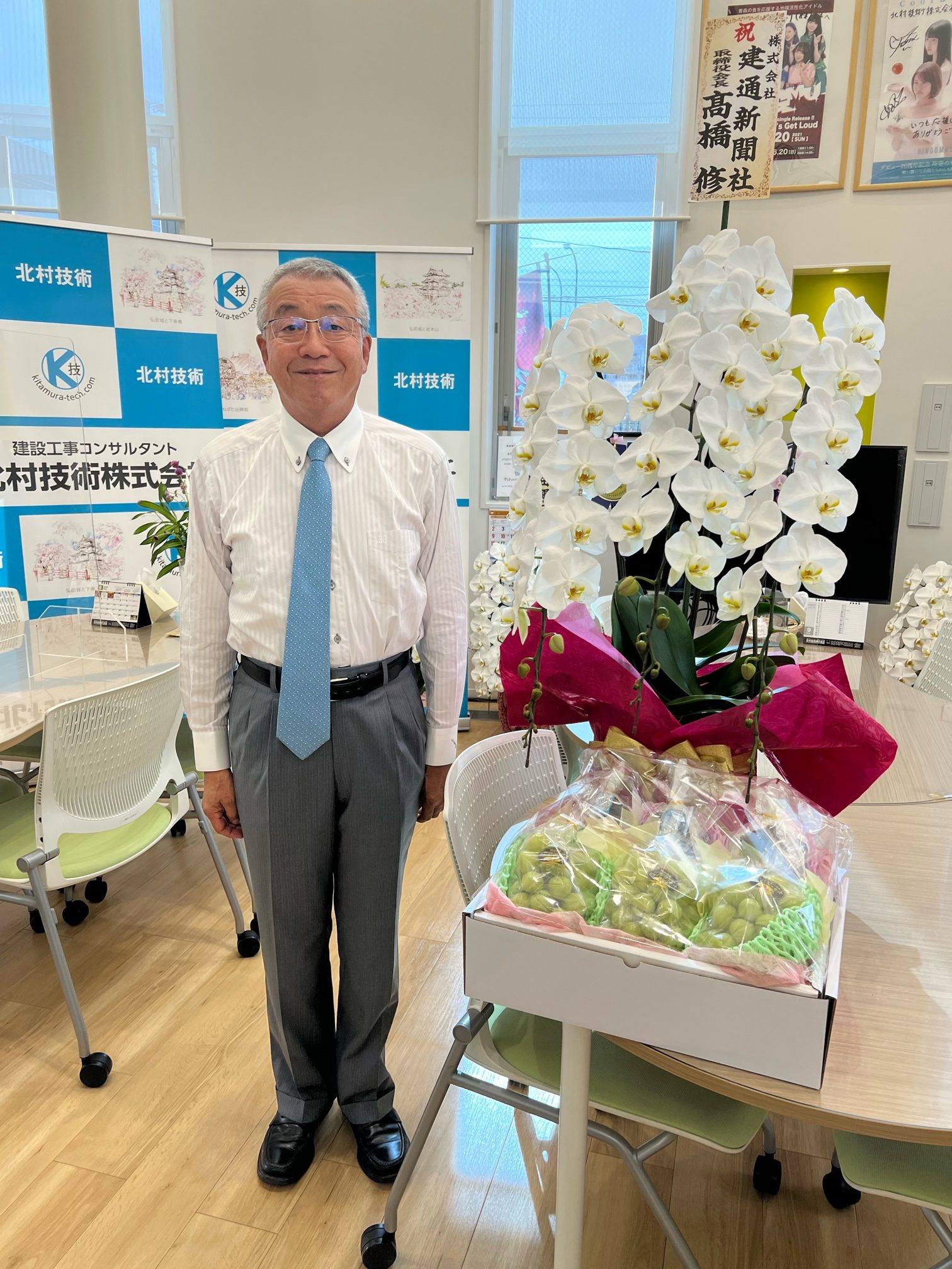 みなさま、こんにちは☺ 朝、夕とめっきり肌寒くなってきました。日中との寒暖差で体調を崩さないように気をつけましょう。 9月8日に北村技術㈱と(株)八戸測量設計の持株会社として北村技術ホールディングスを設立いたしました。 そのお祝いとして、株式会社建通新聞社さん 取締役会長髙橋修様よ... 続きを読む