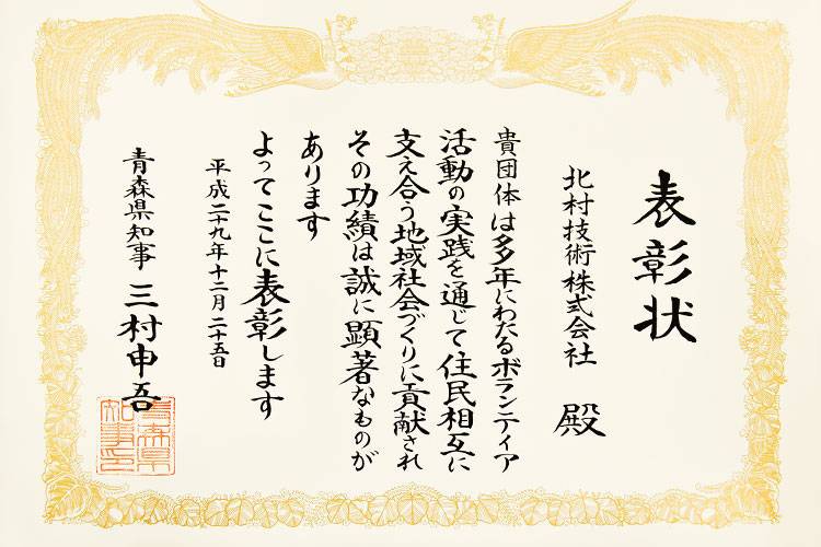 平成29年度ボランティア功労者厚生労働大臣表彰状